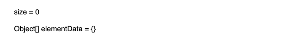 Khởi điểm array sẽ rỗng và có một biến integer cho biết kích thước thực của ArrayList, gọi là size, bằng 0.