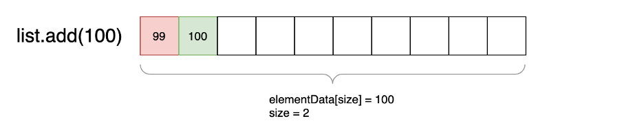 Giả sử elementData đã được lấp đầy (10 phần tử)