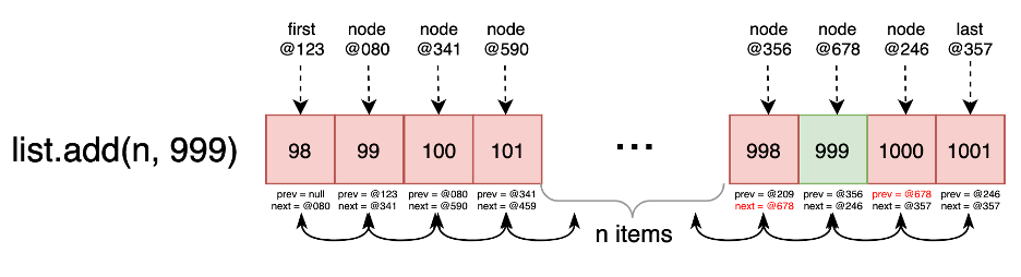 - Việc tìm phần tử ở vị trí ngẫu nhiên của LinkedList kém hơn ArrayList, đặc biệt với index ở trung tâm