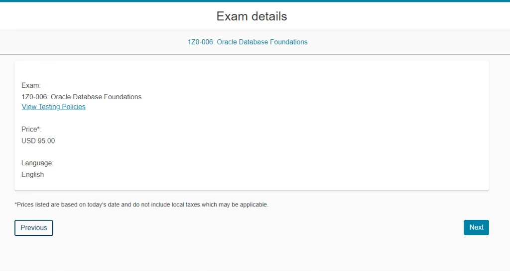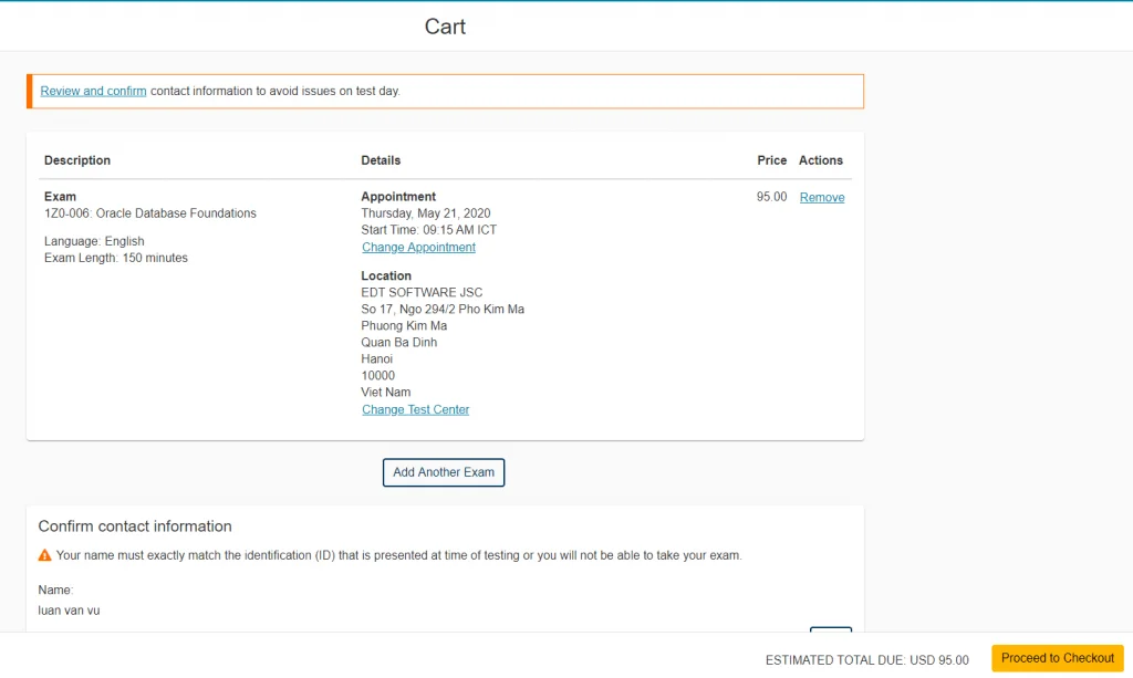 Tiếp theo xem lại về bài thi và số tiền phải trả. Yên tâm là khoản tiền chỉ phải trả khi bạn nhấn xác nhận ở tận cuối quy trình, nên cứ tự tin nhấn Next thôi.