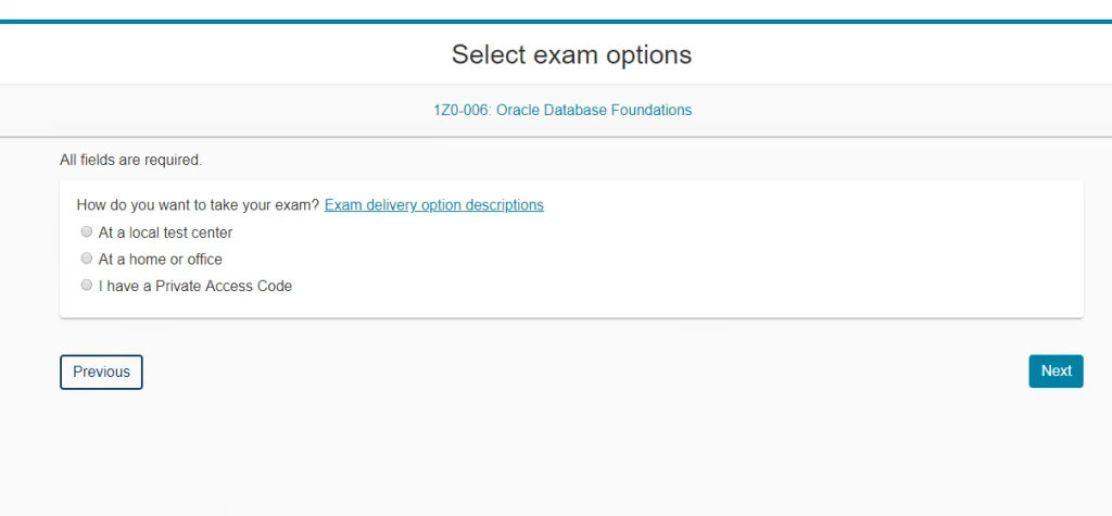 Việc tiếp theo sẽ là chọn Exam mà ta muốn thi