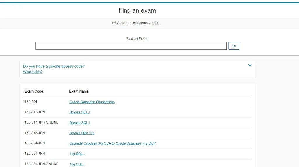 Tiếp theo, nhập vào tổ chức bạn sẽ thi chứng chỉ, mình sẽ thử Oracle