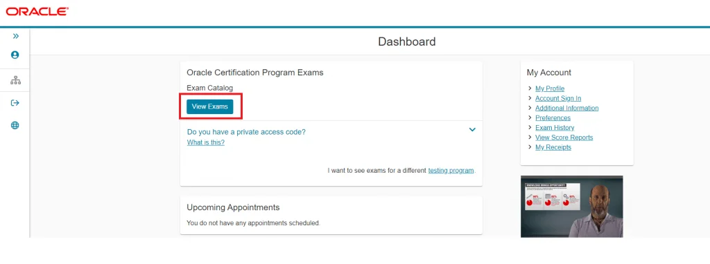 Tại đây, bạn sẽ cần đăng nhập tài khoản. Tùy thuộc vào tổ chức mà sẽ có loại đăng nhập khác nhau, như Oracle là sẽ cần đăng nhập tài khoản Pearson VUE cho Oracle, nhưng với AWS thì bạn lại cần đăng nhập bằng tài khoản AWS Training. Nếu chưa có tài khoản, bạn cần đăng ký. Quá trình đăng ký cũng khá đơn giản.